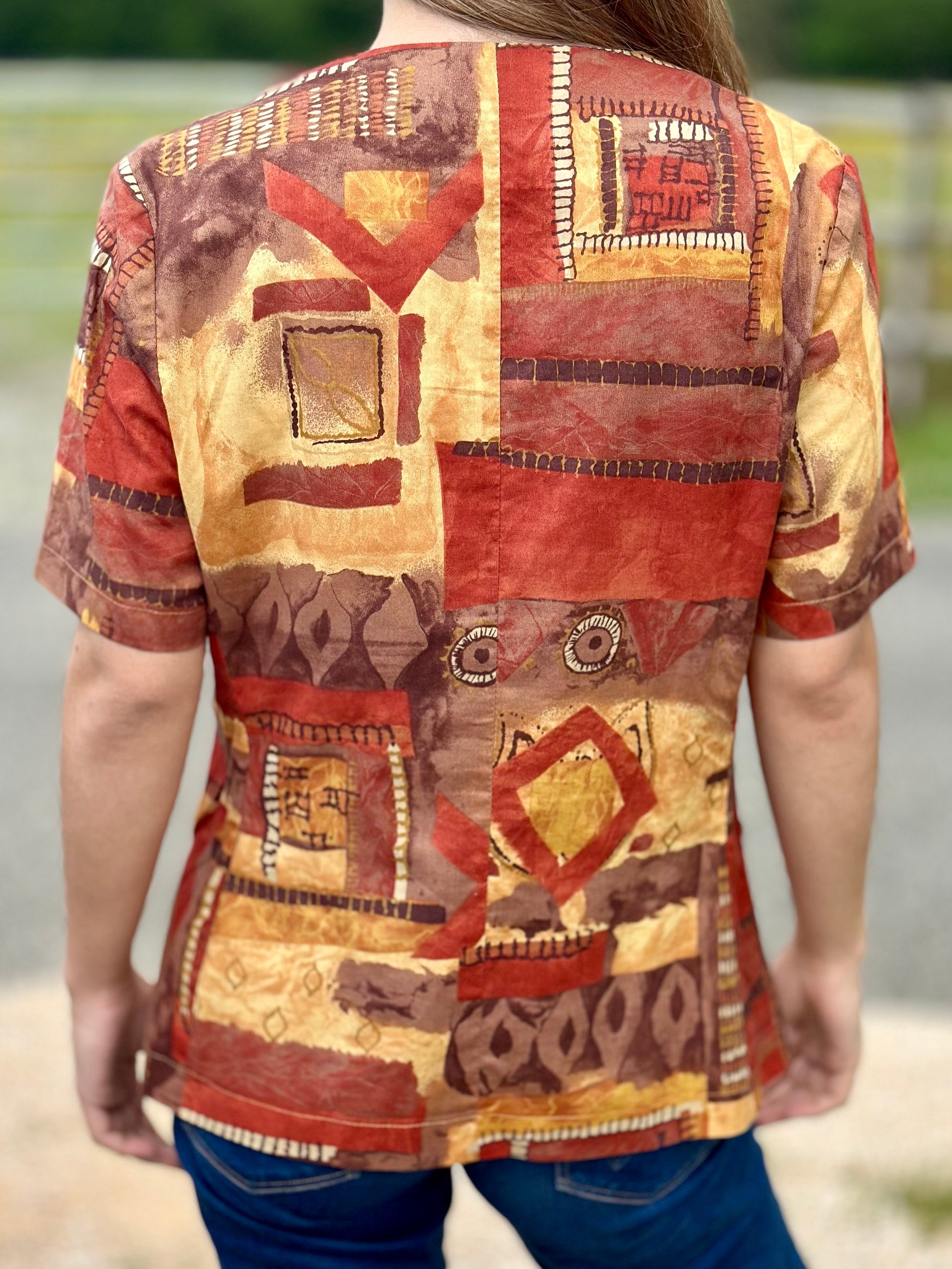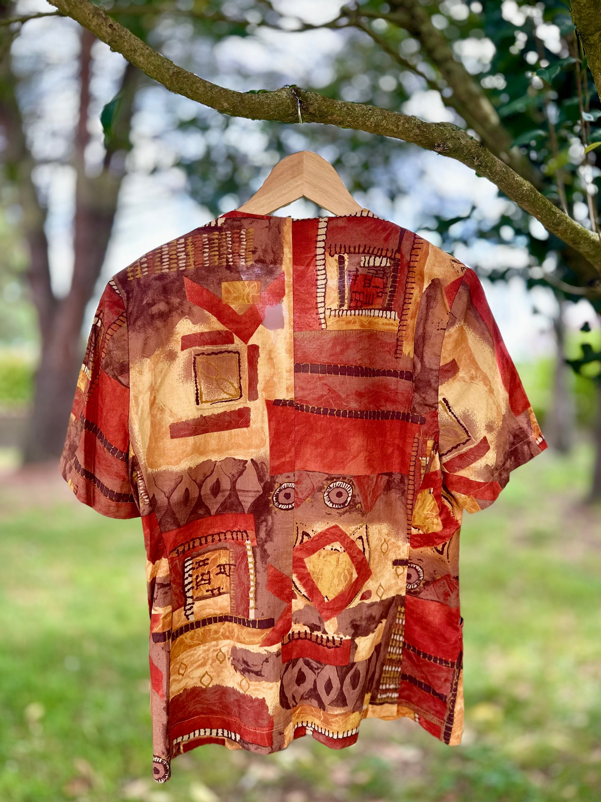 Une pièce empreinte de chaleur et d'histoire. Cette blouse aux teintes automnales semble tout droit sortie d'un après-midi d'autrefois, quand la lumière dorée caresse les étoffes. Sa coupe libre et fluide invite au confort sans jamais renier l'élégance.Signée Burton, elle a ce charme discret des vêtements qui ont vécu et qui sont prêts à raconter une nouvelle histoire, sur vos épaules.