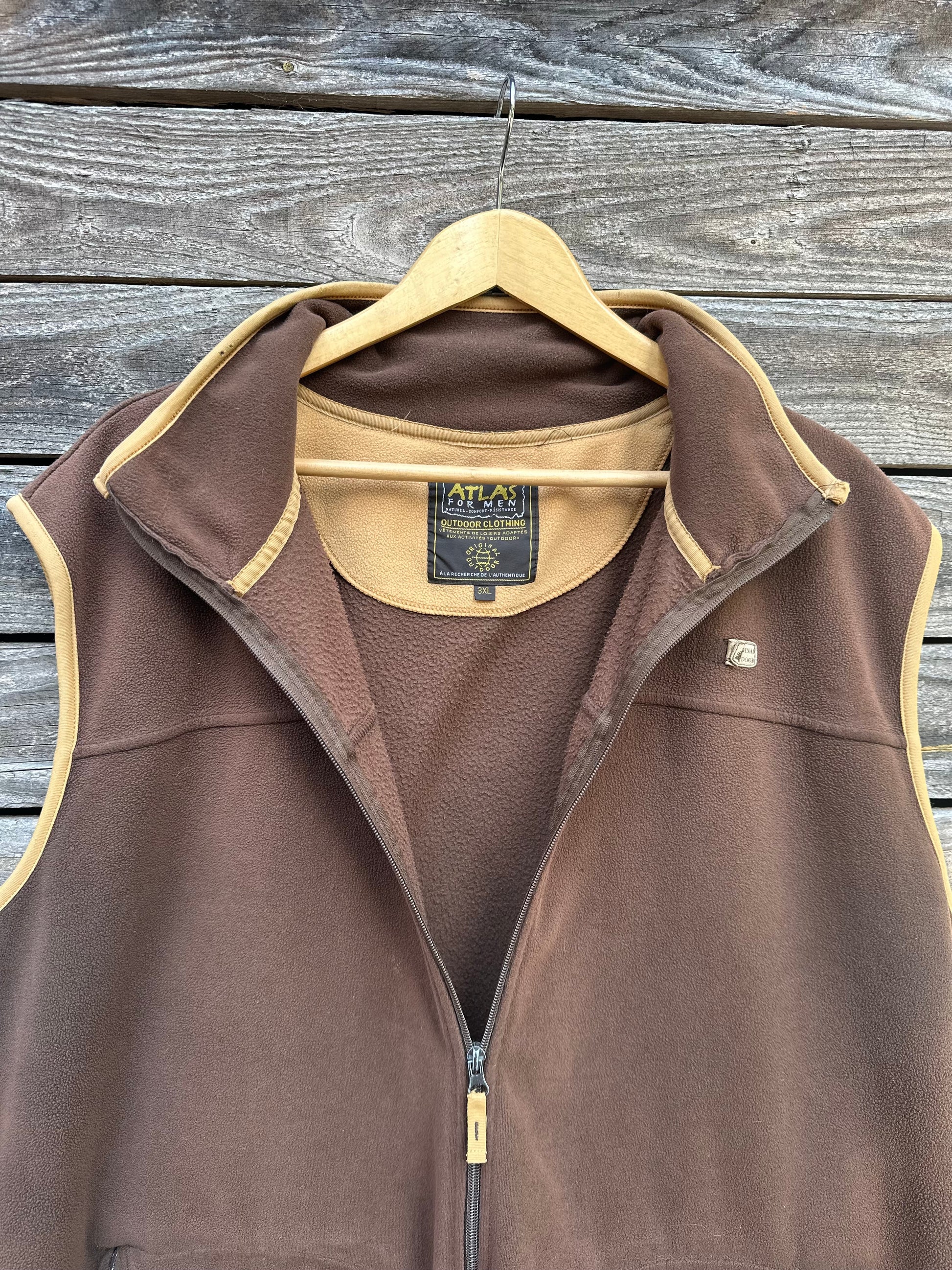 C’est une veste polaire sans manches en taille triple XL. Fabriquée chez Atlas for Men dans les années 2000, elle est d’une qualité indéniable.